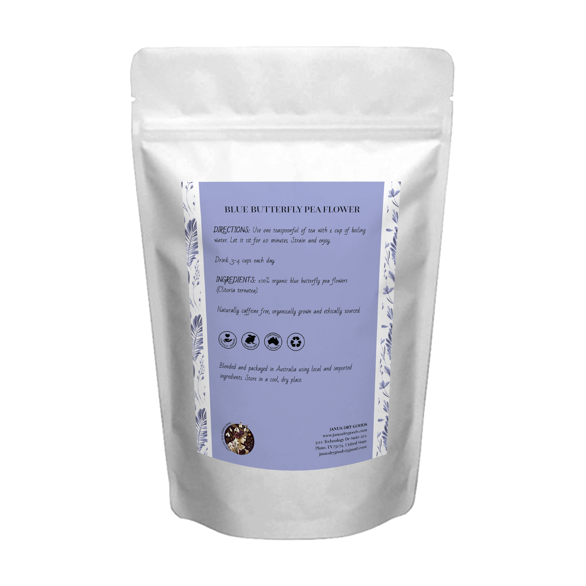 100% organic blue butterfly pea flowers (Clitoria ternatea)